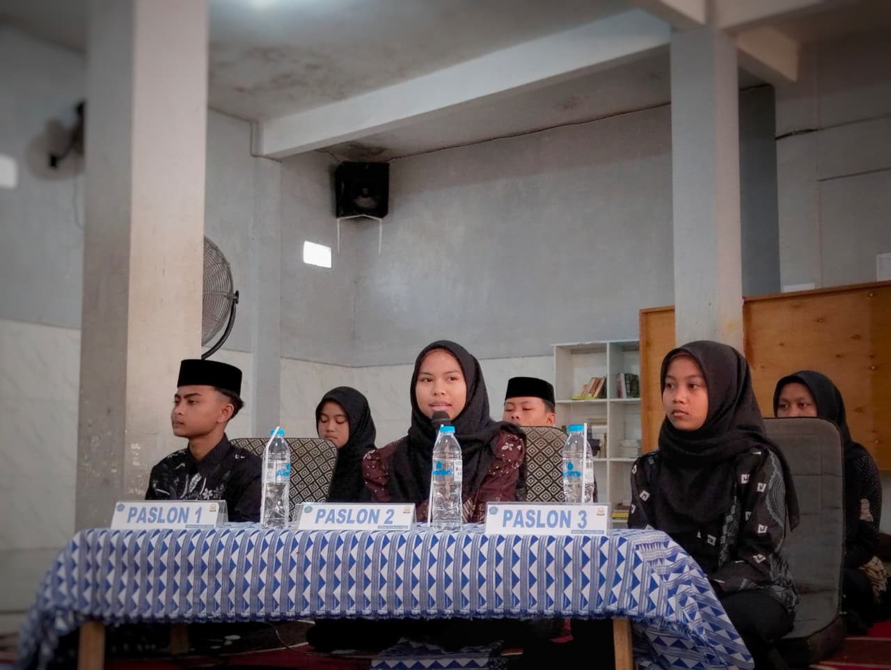 Suasana semakin khidmat saat para tokoh utama debat memasuki ruangan, yaitu: Tiga pasangan calon (Paslon 1 Sipol & Ida, Paslon 2 Lina & Fahmi, Paslon 3 Ida & Nurul), Tiga panelis (Panelis 1 yang mewakili suara organisasi yaitu bapak Hasan Zainul Arifin, S.Pd. Panelis 2 yang mewakili suara guru yaitu ibu Dra. Hj. Fatimah, dan Panelis 3 yang mewakili suara siswa yaitu bapak Herliyanto, S.Pd. Serta moderator yaitu bapak Salman Farizi, S.Pd.I yang bertugas memanajemen jalannya debat agar tetap terarah.
