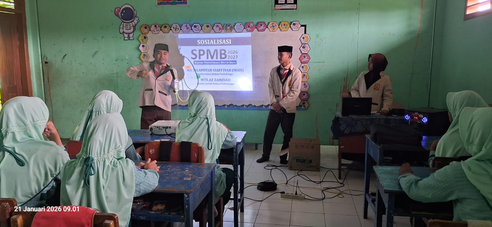 Rabu Pon, 21 Januari 2026, 2 Syaban 1447 tim SPMB MAIS GENIUS yang terdiri dari 5 personel yakni dua orang guru dan 3 orang anggota OSIS bersosialisasi di MTS AI Zainiyah 1 Randumerak Paiton.  Sosialisasi ini adalah kegiatan rutin tahunan menjelang tahun ajaran baru. Kegiatan ini memiliki segudang manfaat di antaranya menjalin silaturahmi dengan beberapa lembaga setingkat SMP. Selain itu, kegiatan ini juga melatih tim SPMB terutama anggota OSIS dalam public speaking dan meningkatkan rasa percaya diri.