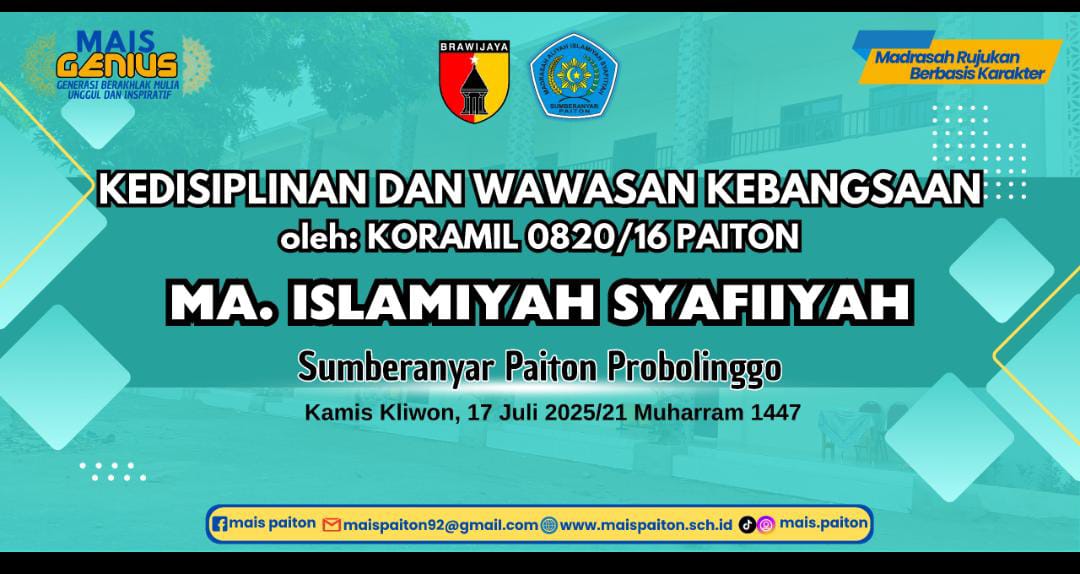 Rabu Pahing, 13 Agustus 2025/19 Shafar 1447 menjadi hari terahir TNI (KORAMIL Paiton) memberikan pelatihan Gerak Jalan di MA. Islamiyah Syafiiyah Sumberanyar Paiton Probolinggo.