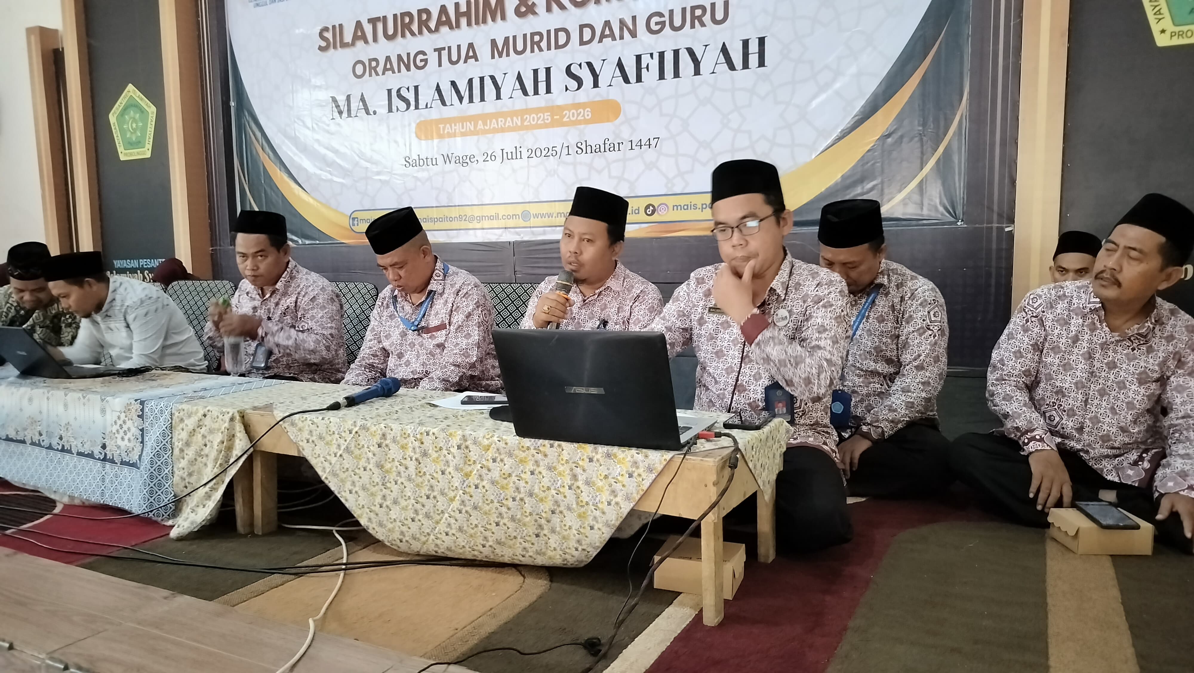 Sabtu Wage, 26 Juli 2025/1 Shafar 1447 – Madrasah Aliyah Islamiyah Syafi’iyah (MAIS) Sumberanyar Paiton Probolinggo menggelar kegiatan SKOMG (Silaturahim & Komunikasi Orangtua Murid dan Guru) MAIS Genius sebagai kegiatan rutinitas tahunan di awal tahun ajaran. Kegiatan ini menjadi wadah penting dalam memberikan informasi menyeluruh mengenai visi, misi, jaminan mutu, program madrasah, serta penanaman nilai-nilai akhlak dan kedisiplinan yang menjadi karakter utama di MAIS.