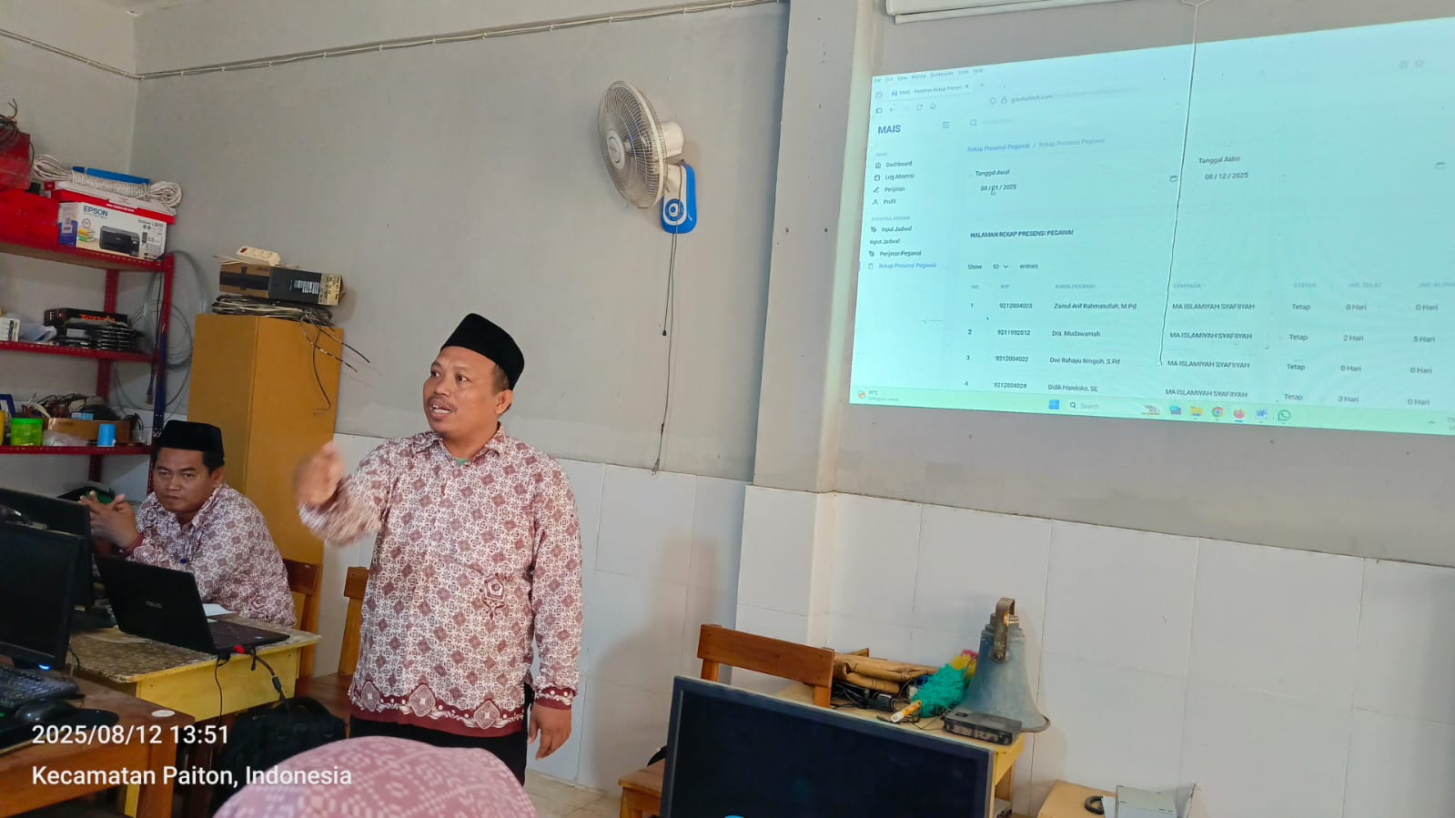 Bertempat di Lab Komputer Guru dan Tenaga Kependidikan (GTK) MA. Islamiyah Syafiiyah (MAIS) Sumberanyar Paiton Probolinggo menggelar Bimtek singkat terkait sistim aplikasi dan report absensi guru. Hal ini dilakukan karena masih banyak guru yang belum memahami teknis penggunaan aplikasi absensi yang telah diluncurkan oleh yayasan satu minggu kemarin.