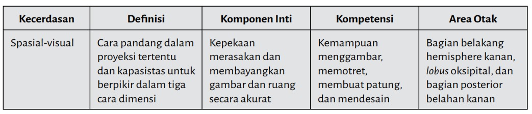 - Merangkai pola (spasial-visual, kinestetik, interpersonal).
