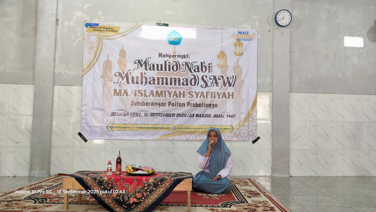 Selasa Legi, 16 Agustus 2025/23 Rabiul Awal 1447 menjadi momen memperingati Maulid Nabi Muhammad SAW di MA. Islamiyah Syafiiyah (MAIS) Sumberanyar Paiton Probolinggo. Usai libur sekitar 10 hari, MIAS melaksanakan perayaan Maulid Nabi dengan acara yang dikemas sederhana di Mushalla Putra.